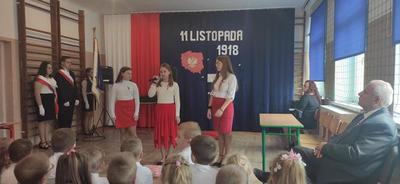 Uroczystość uświetniły pieśni patriotyczne wykonane przez: Juliannę Goździewską / kl. VI/, Magdalenę Pszczółkowską / kl. VI/, Julię Purzycką / kl. VI/, Aleksandrę Kołakowską / kl. IV/ i Lenę Przewodowską / kl. III/.