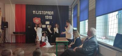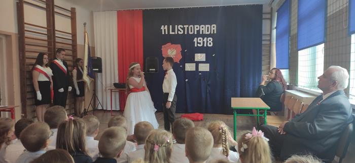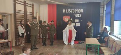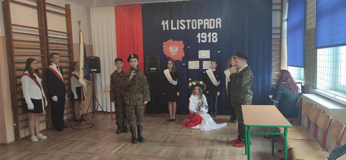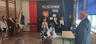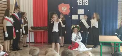 Doskonale w rolę Polski wcieliła się Zuzanna Kołakowska / kl. VIII/ a Józefa Piłsudskiego zagrał – Tomasz Morawski / kl. VIII/.