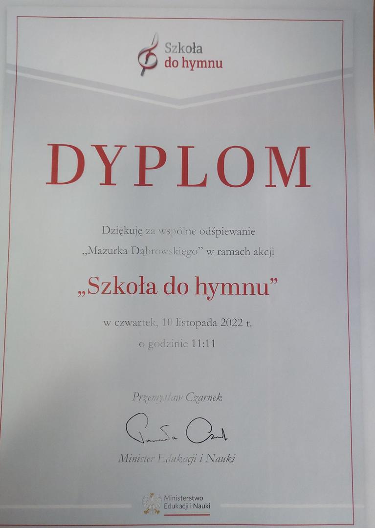 10 listopada tradycyjnie nasza szkoła wzięła udział w akcji ,,Szkoła do hymnu”. Cała społeczność szkolna odśpiewała razem ,,Mazurka Dąbrowskiego”.