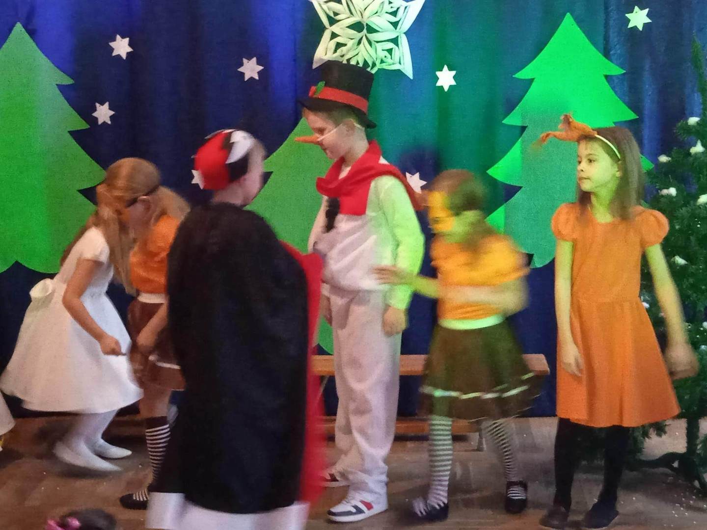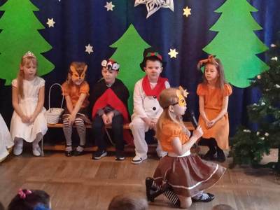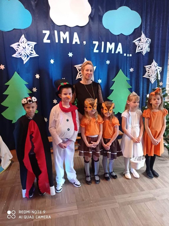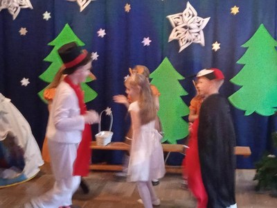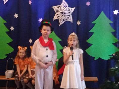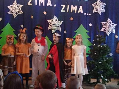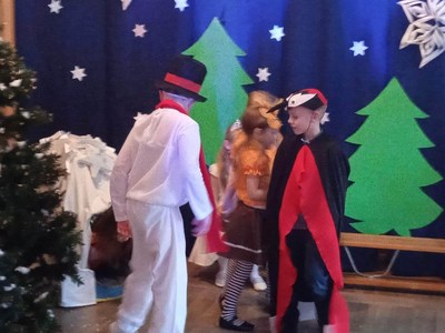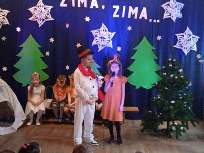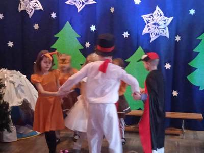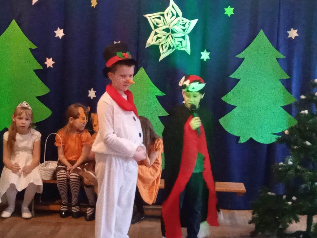 10 stycznia 2023 roku o godzinie 14:00 rozpoczęła się choinka szkolna. Wszyscy świetnie bawili się na pięknie udekorowanej sali przy wspaniałej muzyce. Wśród dzieci bawiących się na choince znaleźli się także nasi absolwenci. Cieszymy się bardzo, że nie zapomnieli o naszej szkole i z chęcią ją odwiedzają. O godzinie14:30 odbyło się przedstawienie choinkowe pt: ,,Zima zima”, w wykonaniu oddziału przedszkolnego. Rodzice, nauczyciele, pan dyrektor, dzieci oraz wszyscy goście z ciekawością wnikliwie śledzili przebieg wystawionego przedstawienia. Aktorzy byli odpowiednio ucharakteryzowani i przebrani. Dzieci wcieliły się w role leśnych zwierząt, takich jak: wiewiórka, sarenki, dzięcioł. Nie zabrakło również pani Zimy oraz bałwanka. Po przedstawieniu pan dyrektor zaprosił dzieci do swoich klas na poczęstunek w postaci wafelka i soczku. Po zdrowej przekąsce wszyscy bawili się dalej. Na choinkę przybyła również zaproszona przez szkołę pani dyrektor Gminnego Ośrodka Kultury w Opinogórze Górnej Joanna Mossakowska, która uświetniła naszą imprezę licznymi zabawami dla dzieci. W zabawie choinkowej uczestniczyli także rodzice, nauczyciele, pan dyrektor. Wszyscy bawili się wspaniale, w doskonałych humorach. Nasza wspaniała impreza zakończyła się około godziny 21. Dziękujemy bardzo pani Joannie Mossakowskiej oraz rodzicom i dzieciom za wspaniałą zabawę.