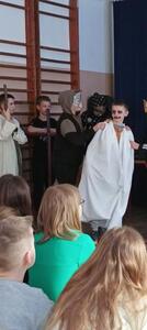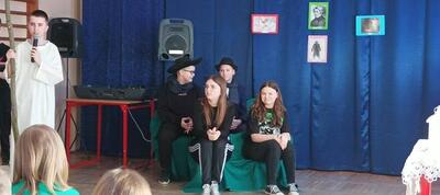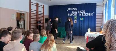 Dnia 06.03.2023r. uczniowie klas IV - VII przenieśli się w mickiewiczowski świat wierzeń i moralności. Zaprezentowali na sali gimnastycznej ,,Dziady''cz. II , tego wybitnego polskiego romantyka.