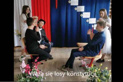 W dniu 28 kwietnia 2023 r. w naszej szkole obchodziliśmy kolejną rocznicę uchwalenia Konstytucji 3 Maja, pierwszej w Europie i drugiej na świecie ustawy zasadniczej. Uczniowie klasy VI przygotowali inscenizację pod tytułem „Polska pachnie majem”.