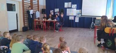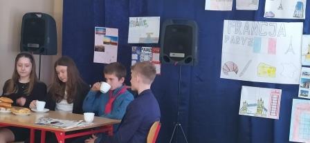 4 maja uczniowie klasy VI zaprezentowali projekt z geografii pt. ,,Londyn, Paryż”. Paryż, stolica Francji i Londyn, stolica Wielkiej Brytanii, to jedne z największych miast Europy i ośrodków miejskich na świecie. Uczniowie przedstawili prezentacje o tych dwóch wspaniałych miastach, ukazując w niej położenie miast, rozwój przemysłu, architekturę a także cechy charakterystyczne tych metropolii. Omawiając Londyn zwrócili uwagę na finanse i handel, z którymi jest on kojarzony, dlatego młodzież przebrała się za biznesmenów. Paryż natomiast kojarzy się z artystami i bogatym dziedzictwem kultury a także modą, dlatego młodzież zaprezentowała dwa pokazy mody nawiązujące do tego miasta.