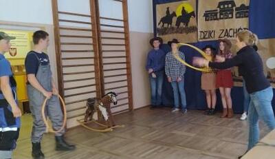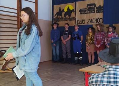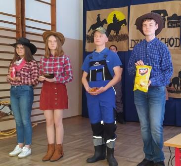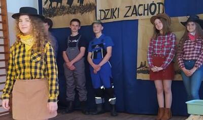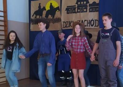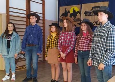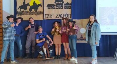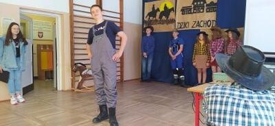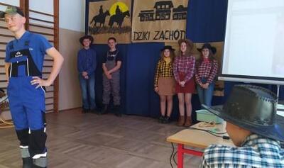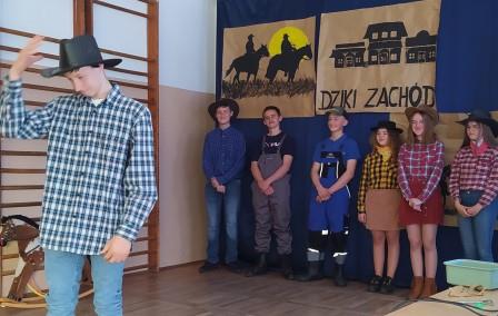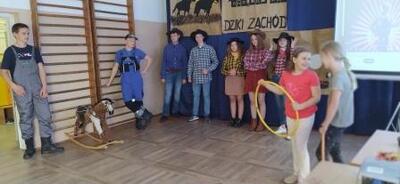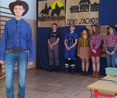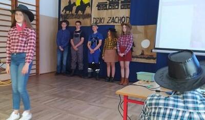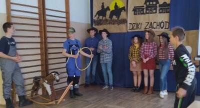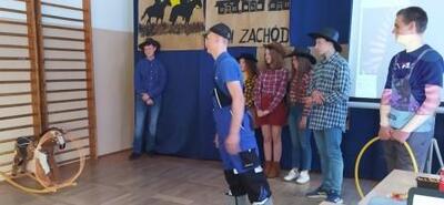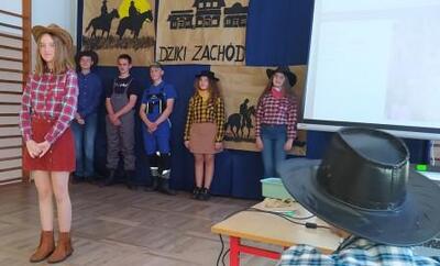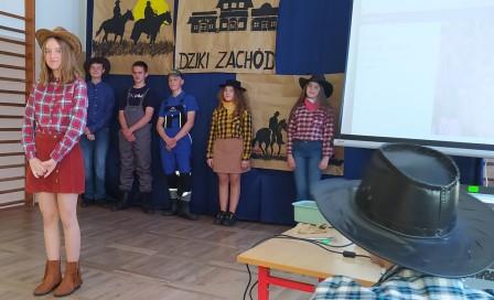 Uczniowie klasy VIII, 16 maja zaprezentowali projekt z geografii pt. ,, Ameryka Północna i Południowa”. Wykonali prezentację o Amerykach, która zawierała najważniejsze wiadomości o kontynentach, położeniu oraz środowisku geograficznym, klimacie, ludności a także rozwoju gospodarczym. Omówili i pokazali część kultury amerykańskiej. Utożsamili się z kowbojami i farmerami ubierając się w podobne stroje jak również zaprezentowali znany amerykański taniec. Na koniec do udziału w projekcie zaprosili swoich kolegów i koleżanki z innych klas i przedszkola do zabawy ,,łapanie konia na lasso”. Ósmoklasiści świetnie się przygotowali do projektu, pokazując w ciekawy sposób kulturę innych narodów.
