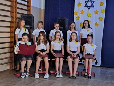 Pod takim hasłem 6 czerwca 2023r. odbył się w naszej szkole uroczysty apel, upamiętniający męczeńską śmierć rodziny Ulmów. Uczniowie kl. IV przedstawili prezentację multimedialną o historii tej rodziny. Przybliżyli wszystkim temat holocaustu, prześladowania Żydów w latach 1939 – 1942 oraz pomocy, udzielanej im przez Polaków. Wspólnie obejrzeliśmy również film na ten temat.