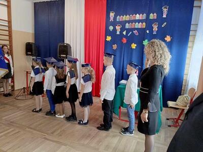 Jako dowód swojej gotowości do nauki, uczniowie klasy I zaprezentowali inscenizację bajki J. Brzechwy pt. „Rzepka”. Oprócz pierwszaków w role wcieliło się również kilkoro uczniów z klasy II i III. Dzięki wsparciu rodziców, uczniowie wystąpili w pięknych strojach, adekwatnych do postaci z bajki. Po uroczystości rodzice uczniów klasy I zaprosili na słodki poczęstunek.
