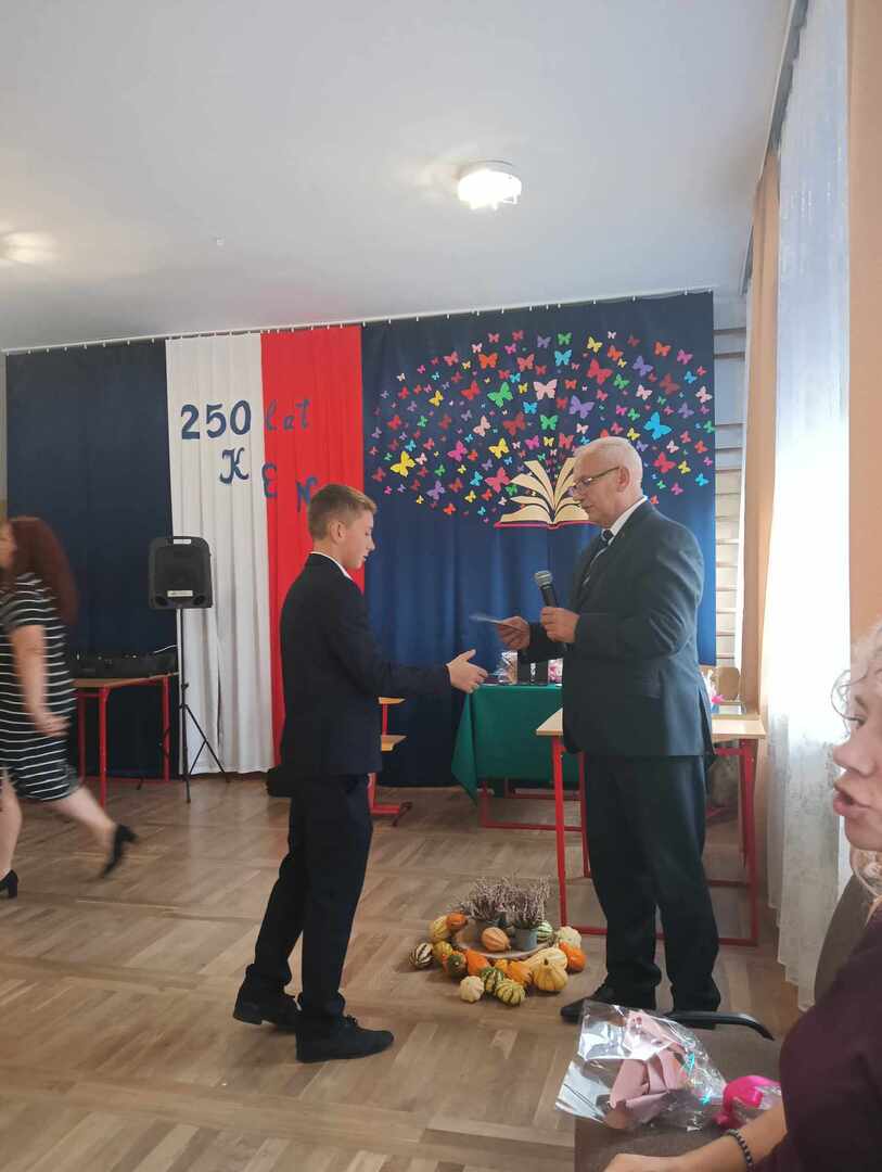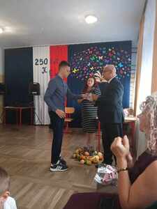 Pan dyrektor również został wyróżniony szczególną nagrodą. Tego dnia otrzymał nagrodę Wójta Gminy, za poświęcenie i trud, które jest wykazywane każdego dnia w odpowiedzialnej i niełatwej, ale jakże pięknej pracy pedagogicznej.