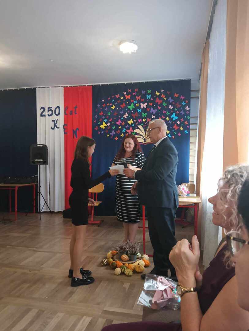 Dzień 13 października był bardzo ważnym dniem dla całej społeczności szkolnej. Obchodziliśmy 250 rocznicę utworzenia Komisji Edukacji Narodowej. Pan dyrektor przedstawił wszystkim rys historyczny jakże ważnej chwili. 14 października 1773 r. sejm powołał do życia Komisję Edukacji Narodowej w składzie czterech senatorów i czterech członków izby poselskiej, przed tą całkowicie nową instytucją, postawiono zadanie odbudowy systemu oświaty w Rzeczypospolitej. W pierwszej kolejności zadbano o finansowe podstawy funkcjonowania szkół. Jest to dzień, w którym jesteśmy wdzięczni za pracę, którą wykonują dyrektorzy, nauczyciele, wszyscy pracownicy oświaty, za ich trud i serce włożone w edukację, za sprostanie coraz to nowym wyzwaniom.