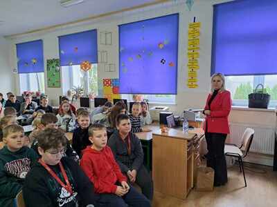 24 października 2023 r. odbyła się w naszej szkole prezentacja dotycząca segregacji odpadów, przeprowadzona przez pracownika PUK w Ciechanowie. Pierwsza część pt. „Zasady segregacji odpadów”, przeznaczona była dla uczniów klas 1-3. Uczniowie klas 4-8 obejrzeli i omówili prezentację pt. „Hierarchia postępowania z odpadami oraz zasady segregacji odpadów”. Treści te znacznie poszerzyły naszą wiedzę dotyczącą sposobów segregacji odpadów w życiu codziennym.