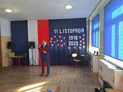 Dnia 10 listopada 2023 r. w Szkole Podstawowej im. Św. Stanisława Kostki w Woli Wierzbowskiej odbyła się uroczysta akademia z okazji Narodowego Święta Niepodległości.