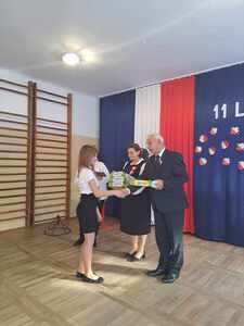 Na zakończenie uroczystości głos zabrał dyr. szkoły p. Henryk Chojnacki, który podziękował za przygotowanie apelu. Pan dyrektor powiedział, że była to akademia „pełna wzruszeń i refleksji”. Dyrektor szkoły w swoim przemówieniu odniósł się do świata współczesnego. Nawiązał do wojny, która toczy się za wschodnią granicą naszego państwa. Odniósł się do wojny na Bliskim Wschodzie, w której giną niewinne kobiety i dzieci.