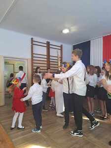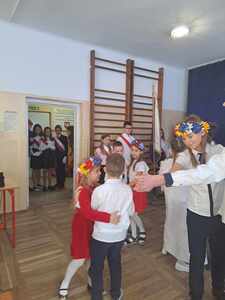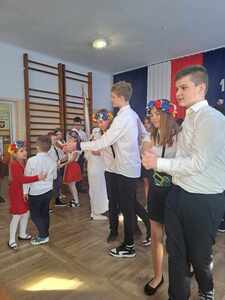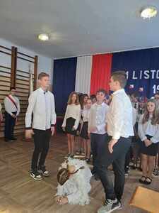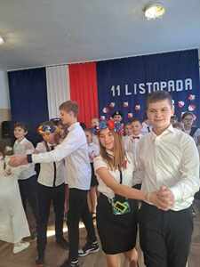 Strój galowy każdego ucznia zdobiły symboliczne biało-czerwone kotyliony.