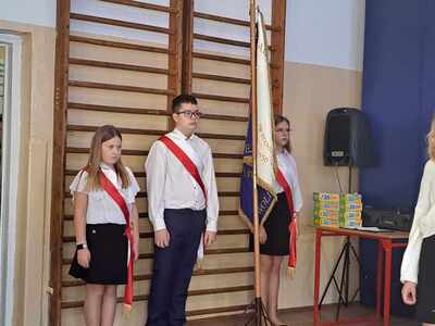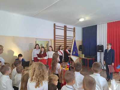 Po wyprowadzeniu sztandaru uczniowie rozeszli się do klas.