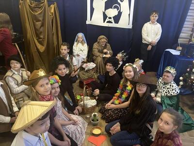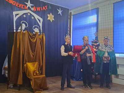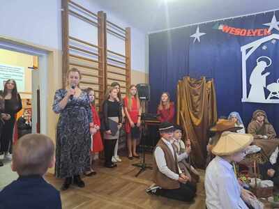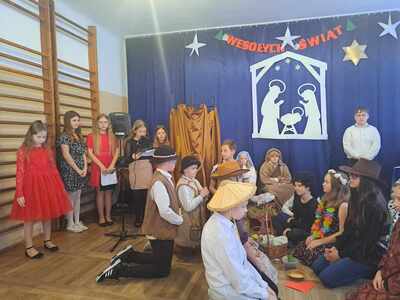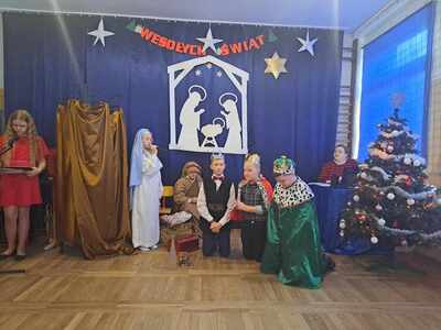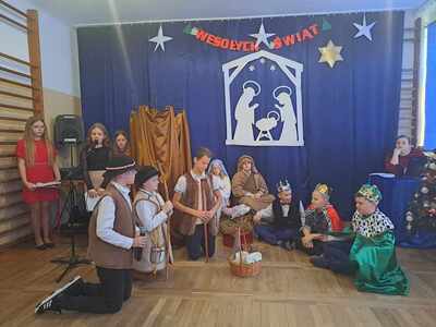 Uczniowie klas IV i V przygotowali Jasełka o narodzeniu Pańskim a świąteczne życzenia złożył zebranym pan dyrektor Henryk Chojnacki.