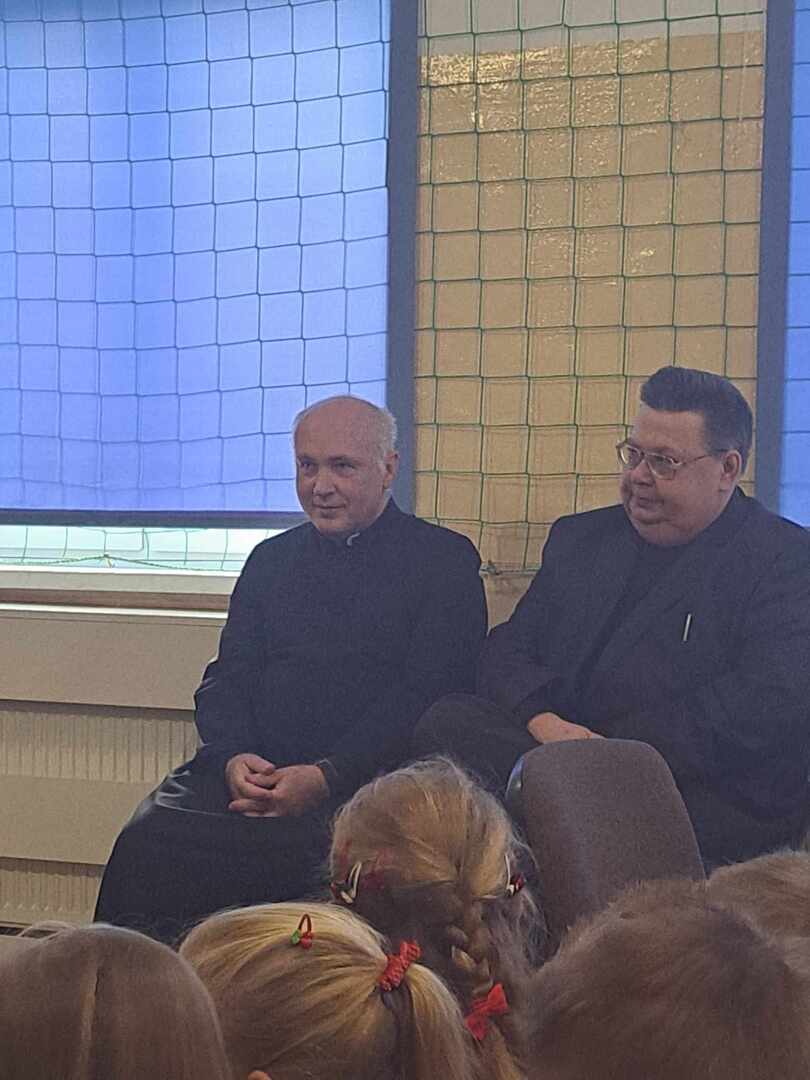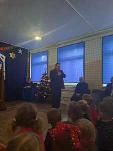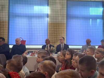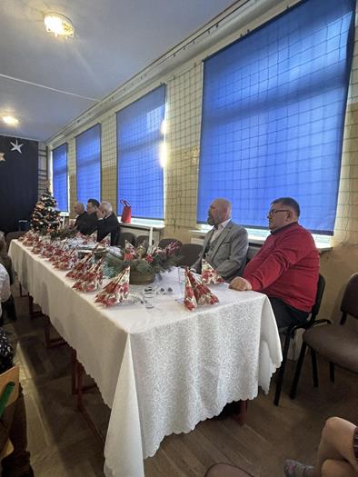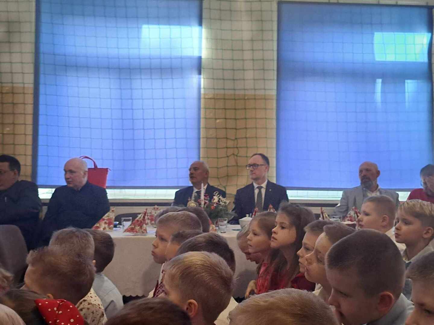 Przy wigilijnym stole zasiedli wraz ze społecznością szkolną szacowni goście: pan wójt Piotr Czyżyk, księża Robert Głuchowski i Andrzej Gajewski. Obecni byli też pan Arkadiusz Humięcki i pan Janusz Kosik.