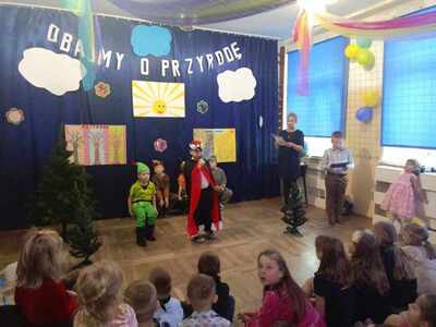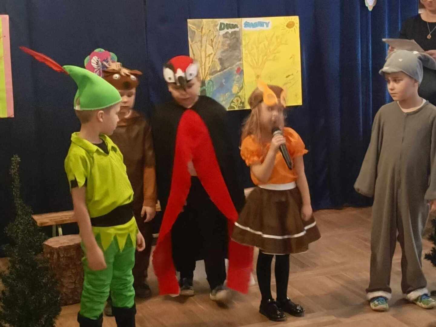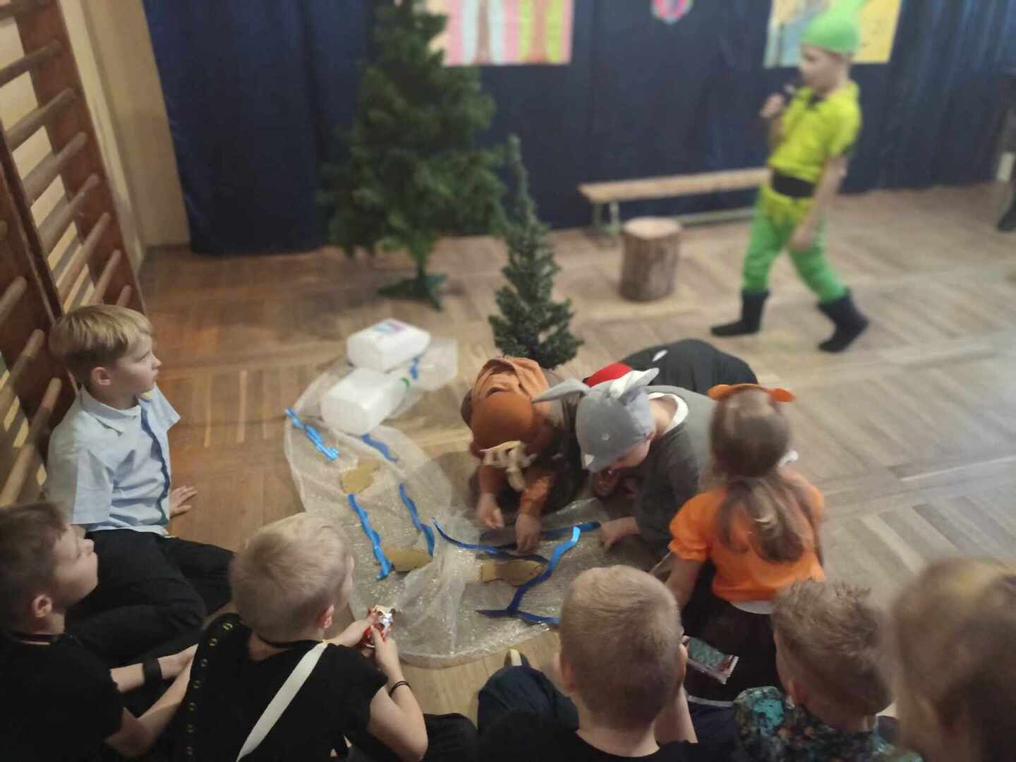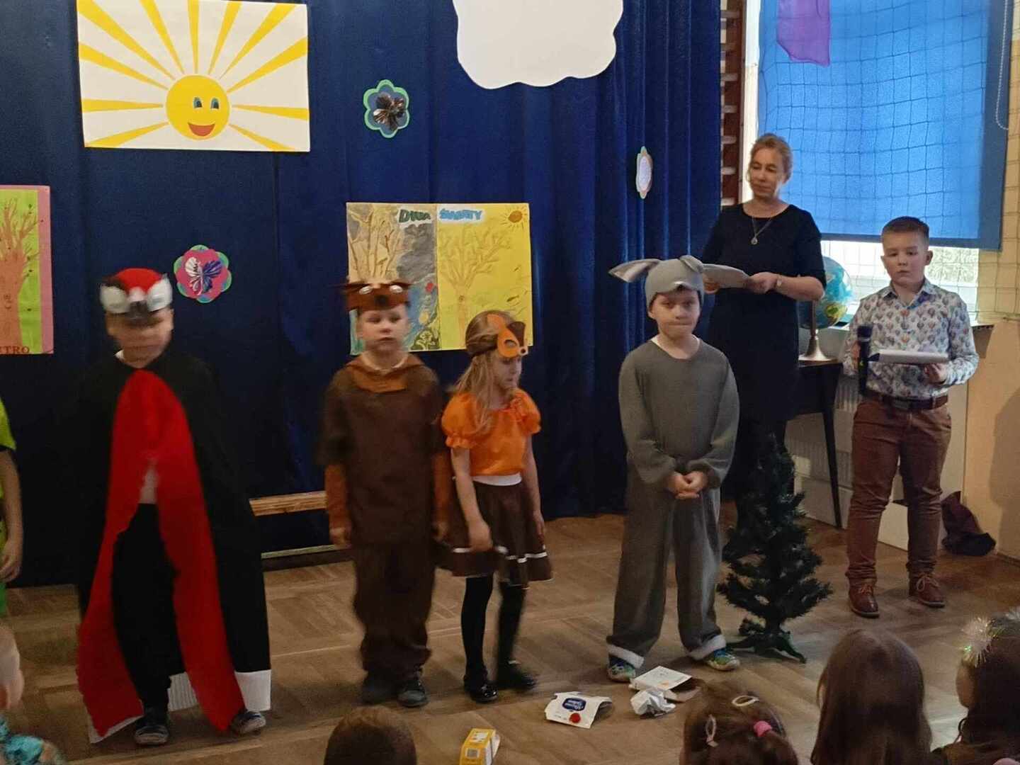 12 stycznia 2024 roku o godzinie 13:00 rozpoczęła się choinka szkolna. Wszyscy świetnie bawili się na pięknie udekorowanej sali przy wspaniałej muzyce. Wśród dzieci bawiących się na choince znaleźli się także nasi absolwenci. O godzinie 15:00 odbyło się przedstawienie choinkowe pt: ,,Dbajmy o przyrodę”, w wykonaniu zerówki, a także dziewczynki pięcioletniej z oddziału przedszkolnego. W roli narratora znakomicie spełnił się chłopiec z klasy trzeciej. Rodzice, nauczyciele, pan dyrektor, dzieci oraz wszyscy goście z ciekawością wnikliwie śledzili przebieg wystawionego przedstawienia. Aktorzy byli odpowiednio ucharakteryzowani i przebrani. Dzieci wcieliły się w role leśnych zwierząt, takich jak: jeleń, sarenka, dzięcioł, zajączek oraz skrzat leśny Torfik. Przesłaniem przedstawienia był zamysł ekologiczny. Po przedstawieniu pan dyrektor zaprosił dzieci do klas na poczęstunek w postaci wafelka i soczku. Po zdrowej przekąsce wszyscy bawili się dalej, przy pięknych rytmach muzyki. Na choinkę przybyła również pani animatorka, która uświetniła naszą imprezę licznymi piosenkami i zabawami dla dzieci. Podczas zabawy choinkowej aktywnie wspierały nas mamy, które sprzedawały w sklepiku szkolnym. W zabawie choinkowej uczestniczyli także rodzice i nauczyciele. Wszyscy bawili się świetnie i w doskonałych humorach. Nasza wspaniała impreza zakończyła się około godziny 20:00. Dziękujemy bardzo rodzicom i dzieciom za wspaniałą zabawę.