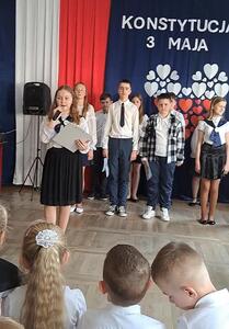 30 kwietnia 2024 roku uczniowie, rodzice, nauczyciele i wszyscy pracownicy Szkoły Podstawowej im. św. Stanisława Kostki po raz kolejny celebrowali Święto Narodowe Trzeciego Maja. Z tej okazji na sali gimnastycznej odbył się apel.