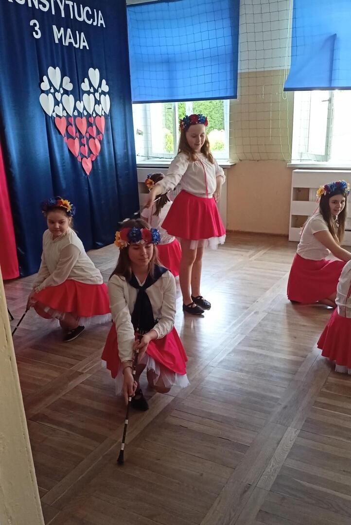 Uroczystość rozpoczęła się wystąpieniem gospodarzy wszystkich klas naszej szkoły i złożeniem przez nich meldunku. Następnie wprowadzono poczet sztandarowy i odśpiewano hymn państwowy. W dalszej, artystycznej części spotkania uczniowie klasy piątej i szóstej przedstawili swoim koleżankom oraz kolegom co działo się 3 maja 1791 roku. Opowiedzieli, korzystając z pięknych słów wybitnych, polskich poetów, czym są dla nich pojęcia: Ojczyzna, Naród i Wolność. Na scenie wystąpiły również uczennice (Alicja Jabłonowska, Dorota Kołakowska, Aleksandra Kołakowska i Julianna Goździewska), które, wykonując pieśni patriotyczne, dały pokaz swoich wokalnych umiejętności. Na koniec, uczennice klasy piątej zaprezentowały zebranym taniec mażoretkowy, do którego choreografię przygotowały samodzielnie i z własnej inicjatywy. Po tym pokazie odśpiewano hymn Szkoły Podstawowej im. św. Stanisława Kostki w Woli Wierzbowskiej, wyprowadzono sztandar i zakończono uroczyste obchody święta Konstytucji 3 maja.