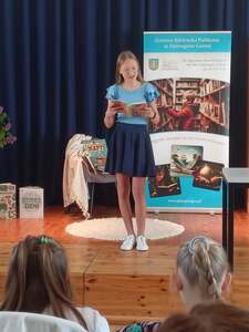 Tego samego dnia odbyły się również gminne eliminacje do Powiatowego Konkursu Recytatorskiego z cyklu „Słowa Bliskie Młodym”- „Kiedy słońce zaczaruje sady”, który jest organizowany w ramach obchodów Roku Czesława Miłosza. Troje uczniów naszej szkoły zdobyło miejsca na podium. Pierwsze miejsce zajął Antoni Skierkowski, drugie jurorzy przyznali Magdalenie Pszczółkowskiej, natomiast trzecie miejsce zdobyła Julia Purzycka. Zyskali oni tym samym możliwość reprezentowania naszej gminy podczas kolejnego etapu konkursu, który odbędzie się 22 maja 2024 roku w siedzibie Powiatowej Biblioteki Publicznej im. Zygmunta Krasińskiego w Ciechanowie.