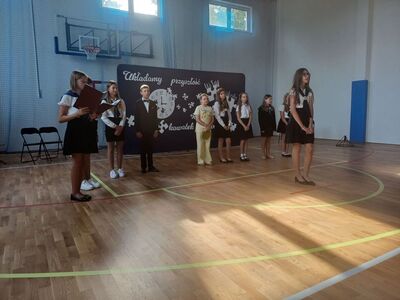Część oficjalną przedstawienia przygotowała Pani Maria Sykut wraz z uczniami klasy VII i VIII, natomiast część artystyczną przygotowali uczniowie klasy V i VI wraz z Panią Emilią Kołodziejską i Panią Katarzyną Adamską - Zduńczyk. Uroczystość uświetniły występy wokalne utalentowanych uczennic naszej szkoły: Julii Adamskiej, Julianny Goździewskiej, Alicji Jabłonowskiej oraz Aleksandry Kołakowskiej.