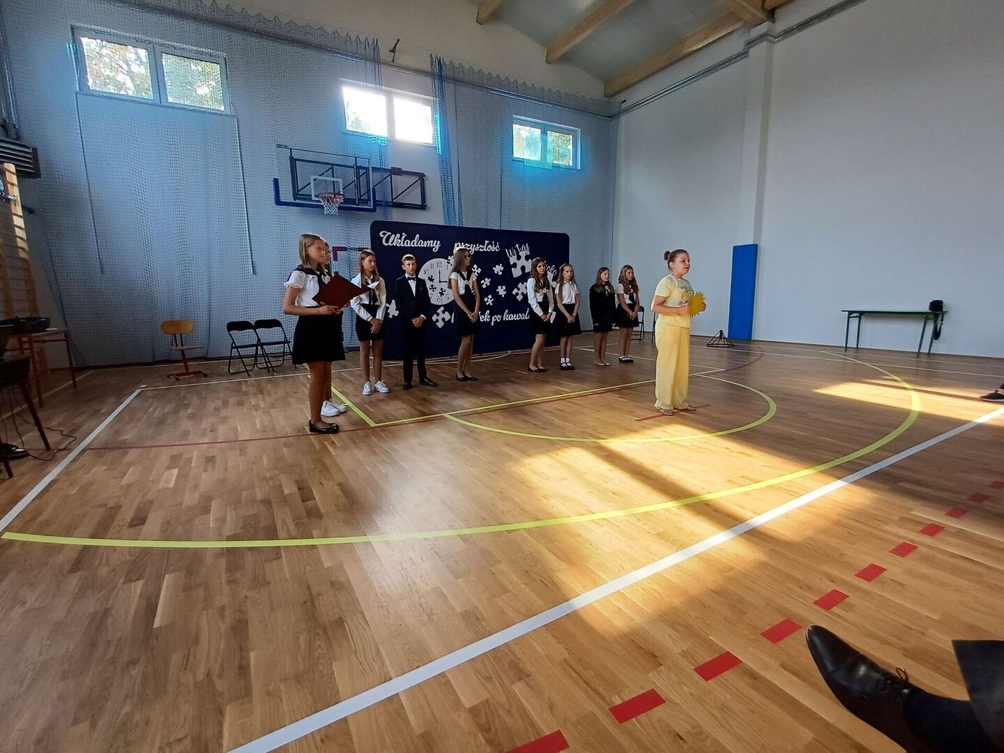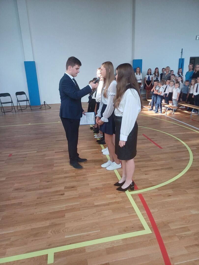 2.09.2024 r. o godzinie 9:00 w naszej szkole odbyło się uroczyste rozpoczęcie roku szkolnego 2024/2025. Na początku uroczystości przewodniczący samorządu uczniowskiego - Krzysztof Brzozowski powitał Pana Wójta Piotra Czyżyka, nową Dyrektor Szkoły Podstawowej im. św. Stanisława Kostki w Woli Wierzbowskiej – Panią Martę Pokropską oraz wszystkich zgromadzonych na apelu.