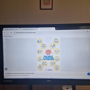 W dniu 10.10 co roku obchodzony jest Światowy Dzień Zdrowia Psychicznego. Jest to dobry moment do poruszenia bardzo ważnego tematu , jakim jest nasz dobrostan psychiczny. Celem organizacji tego dnia w naszej szkole było uświadomienie uczniom czym jest zdrowie psychiczne , jak o nie dbać, kto może pomóc uczniom szukającym wsparcia oraz pod jakimi numerami mogą otrzymać wsparcie psychologiczne .