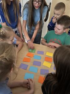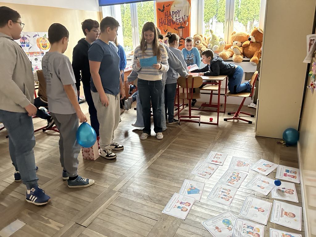 Pierwszym punktem obchodów tego wyjątkowego dnia były krótkie zajęcia edukacyjne, na które zostali zaproszeni wszyscy chętni uczniowie z klas I-VIII. W formie gier i zabaw mieli okazję zapoznać się z prawami, które im przysługują oraz utrwalić nabytą wiedzę. Najmłodsi, czyli uczniowie oddziału „0” oraz przedszkolaki, również brali czynny udział w przyswajaniu nowych wiadomości- kolorowali obrazki, które w formie graficznej przedstawiały ich prawa.