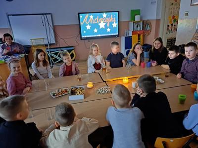 28.11.2024r. uczniowie kl. I – III spotkali się , aby wspólnie przeżyć ten wyjątkowy poranek. Na początku dzieci obejrzały film edukacyjny o tradycji związanej z Andrzejkami. W miłej i radosnej atmosferze – zapalonych świec , malinowej herbatce i słodkim poczęstunku odbyły się wróżby. Zarówno dziewczynkom, jak i chłopcom towarzyszyły wielkie emocje związane z poznaniem bliższej i dalszej przyszłości. Wszyscy z przymrużeniem oka potraktowali to, co przyniosły wróżby.