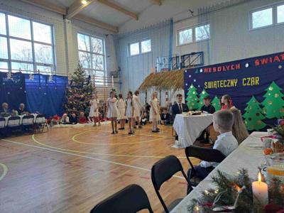 Jak co roku w naszej szkole, w ostatnim dniu nauki, odbyła się Wigilia. Oprócz społeczności szkolnej obecni byli też zaproszeni goście : Proboszcz parafii Koziczynek ksiądz Robert Głuchowski, radni , sołtysi, przyjaciele szkoły i rodzice.