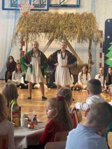 Uczniowie naszej szkoły już od dłuższego czasu przygotowywali się do tej uroczystości. W przygotowaniach wspierali nas rodzice , dzięki którym mieliśmy piękną , żywą choinkę, i szopkę. Efekty tych przygotowań i zaangażowania mieliśmy okazję oglądać podczas występu uczniów w programie artystycznym Wieczór wigilijny tradycja i zwyczaje.