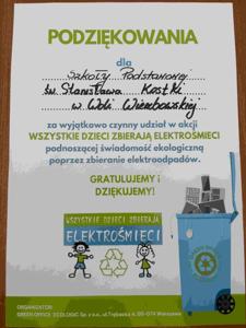 28 kwietnia 2025 roku podsumowana została akcja zbiórki elektroodpadów w naszej szkole. Wspólnymi siłami udało nam się zebrać 1410 kg zużytego sprzętu elektrycznego i elektronicznego. Za zebraną ilość nasza placówka otrzymuje kwotę 282 zł, którą przeznaczy na zakup materiałów eksploatacyjnych i biurowych potrzebnych w naszej szkole.