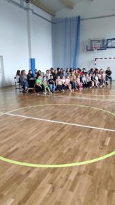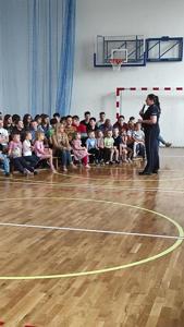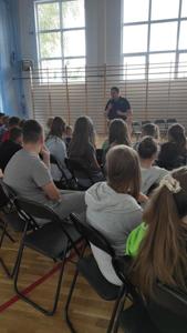 12.06.25r. na sali gimnastycznej odbyło się spotkanie Pań z Komendy Powiatowej Policji w Ciechanowie (p. Małgorzatą Listkowską i p. Kamilą Nosarzewską) z uczniami naszej szkoły na temat bezpieczeństwa.