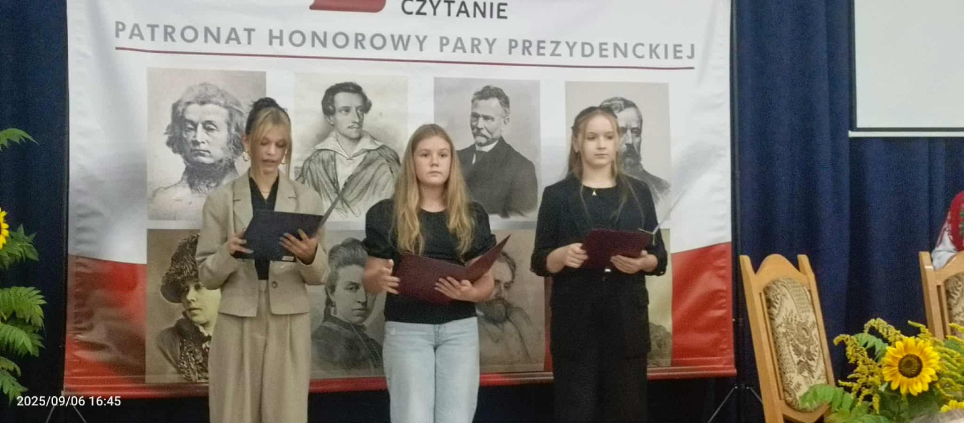 W tym szczytnym przedsięwzięciu uczestniczyły również trzy uczennice z naszej szkoły, tj. Lena Przewodowska z klasy VI, Aleksandra Kołakowska z klasy VII i Patrycja Malinowska z klasy VIII.