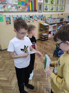 To hasło stało się inspiracją do wielu działań, które pomogły uczniom lepiej zrozumieć, jak ważne są relacje, rozmowa i wzajemne wsparcie w codziennym życiu. Podczas przerw uczniowie odłożyli telefony i zamiast spędzać czas online, rozmawiali, bawili się wspólnie, grali i po prostu byli razem. Okazało się, że nawet kilka minut rozmowy potrafi przynieść więcej radości niż przeglądanie ekranu. W ramach akcji dzieci przygotowały także listy i laurki z podziękowaniami dla swoich koleżanek i kolegów. Pisały w nich o tym, za co są sobie nawzajem wdzięczne – za uśmiech, pomoc, wspólne chwile czy dobre słowo.