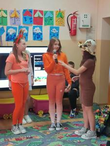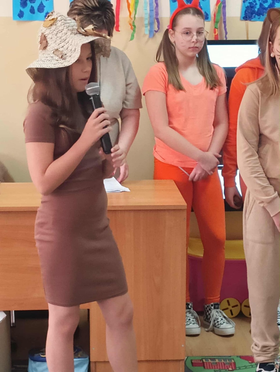 Doskonale w rolę Pani Jesień wcieliła się Joanna Pokropska. Dużym zaskoczeniem dla dzieciaków była wizyta kolczastych gości - jeży, w wykonaniu Anny Lubczyńskiej i Marii Pszczółkowskiej.