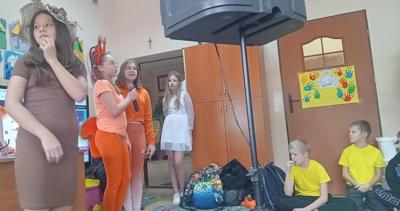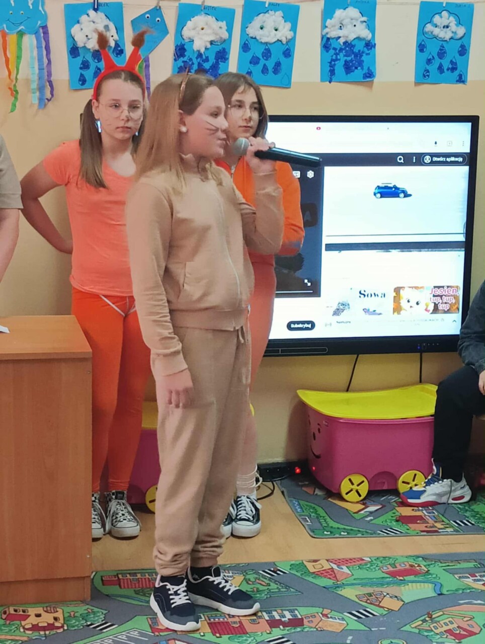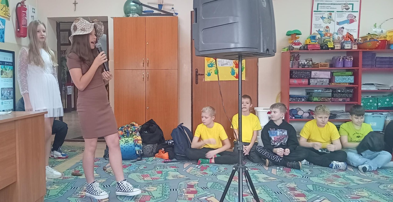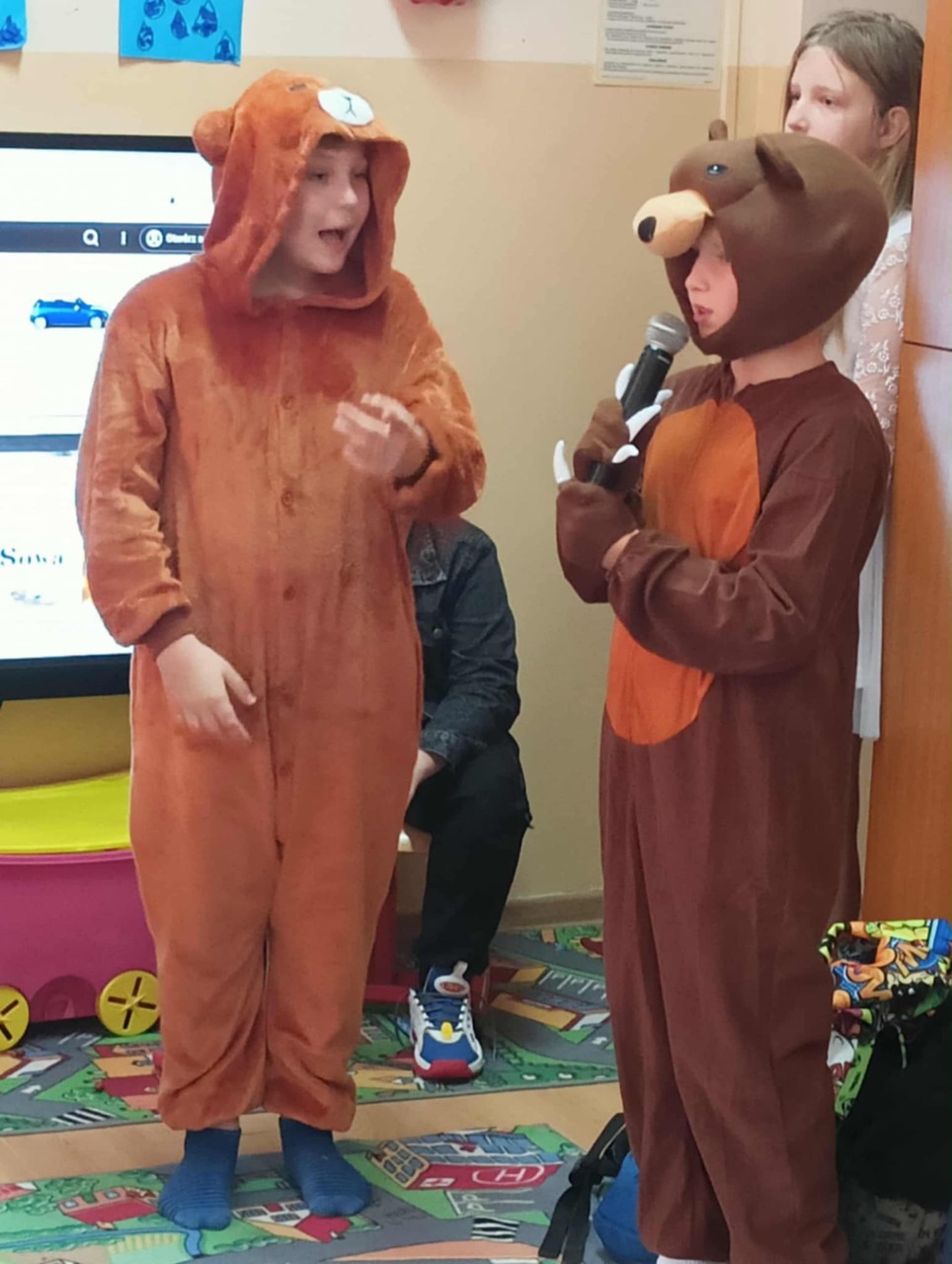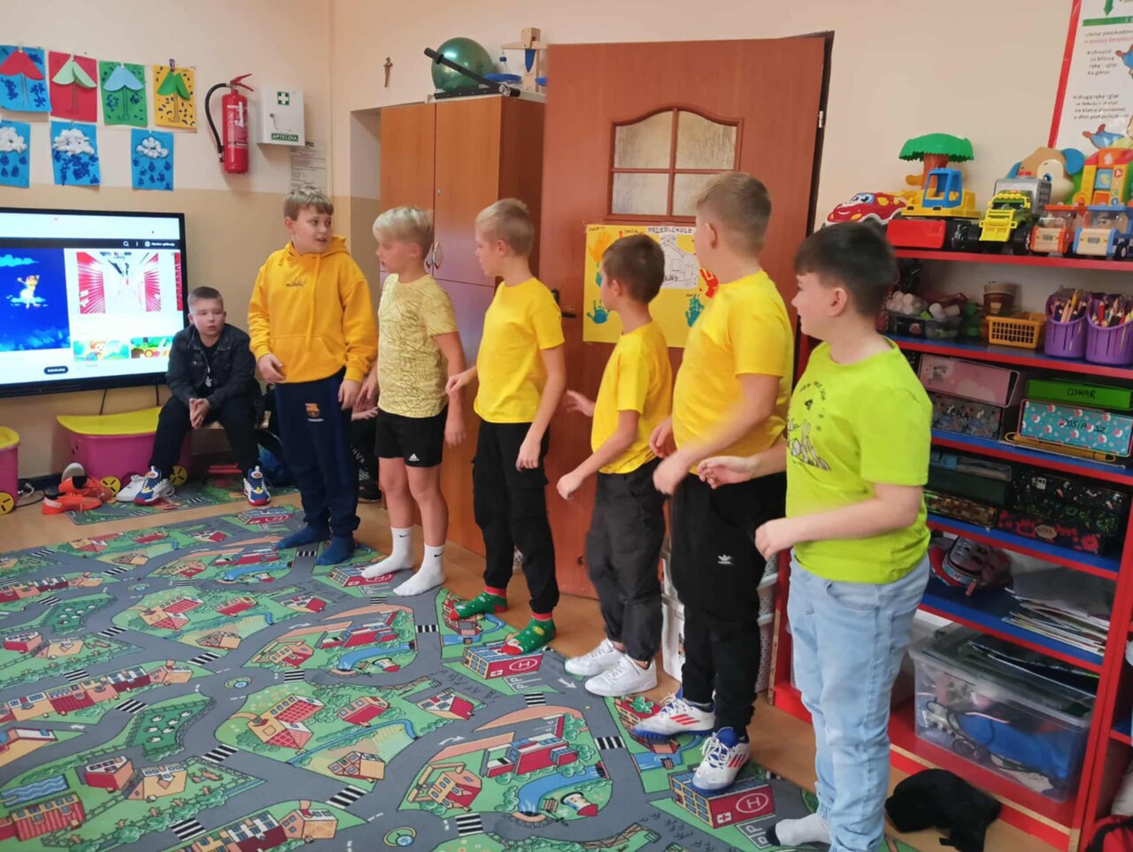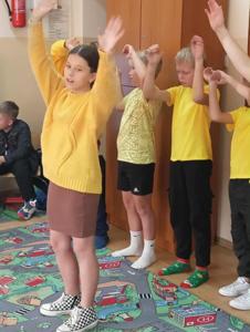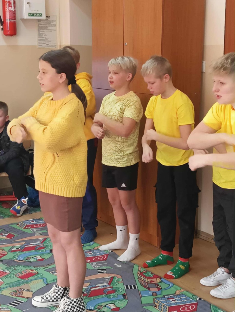 Uczniowie kl. V opracowali układ choreograficzny do piosenki ,,Pszczółka Maja''. Wszyscy uczestnicy spotkania byli pod wrażeniem tak wspaniałego występu.