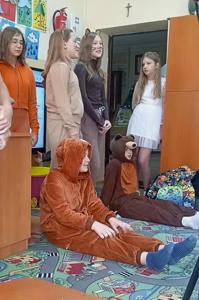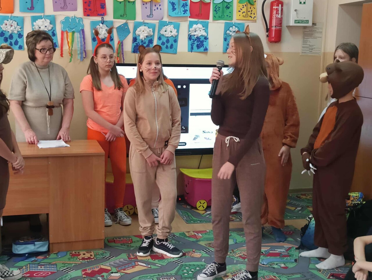 W piątek , 31. 10. 2025r. uczniowie kl. V odwiedziły dzieci z oddziału przedszkolnego i kl. ''0''. Przygotowały dla nich inscenizację związaną z tematyką jesienną. W spotkaniu z dziećmi brały udział: dyrektor szkoły, P. Marta Pokropska, wych. kl. V, P. Małgorzata Chojnacka,, P. Beata Okoniecka, P. Katarzyna Pajewska, P. Ewa Boczkowska i P. Joanna Ropelewska.