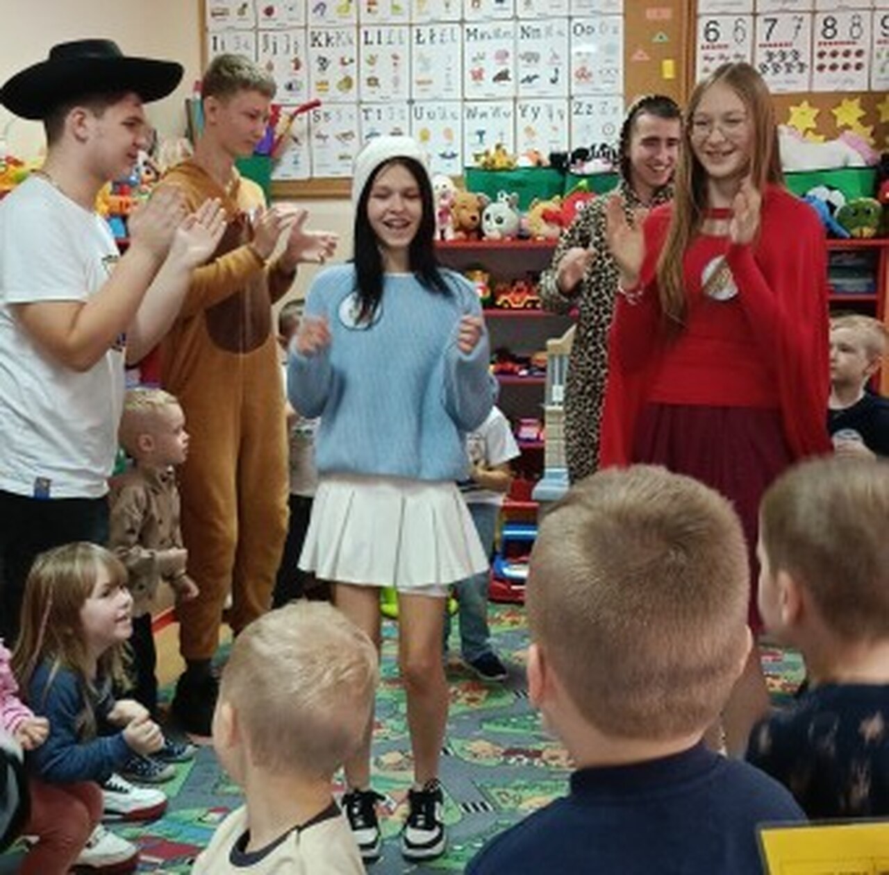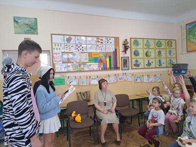 Uczniowie kl. VIII w ramach wolontariatu przygotowali dla uczniów kl. I- III konkursy,zabawy , quizy tematyczne. Była to dobra okazja, by zachęcić najmłodszych do czytania bajek i rozwijania ich wyobraźni.