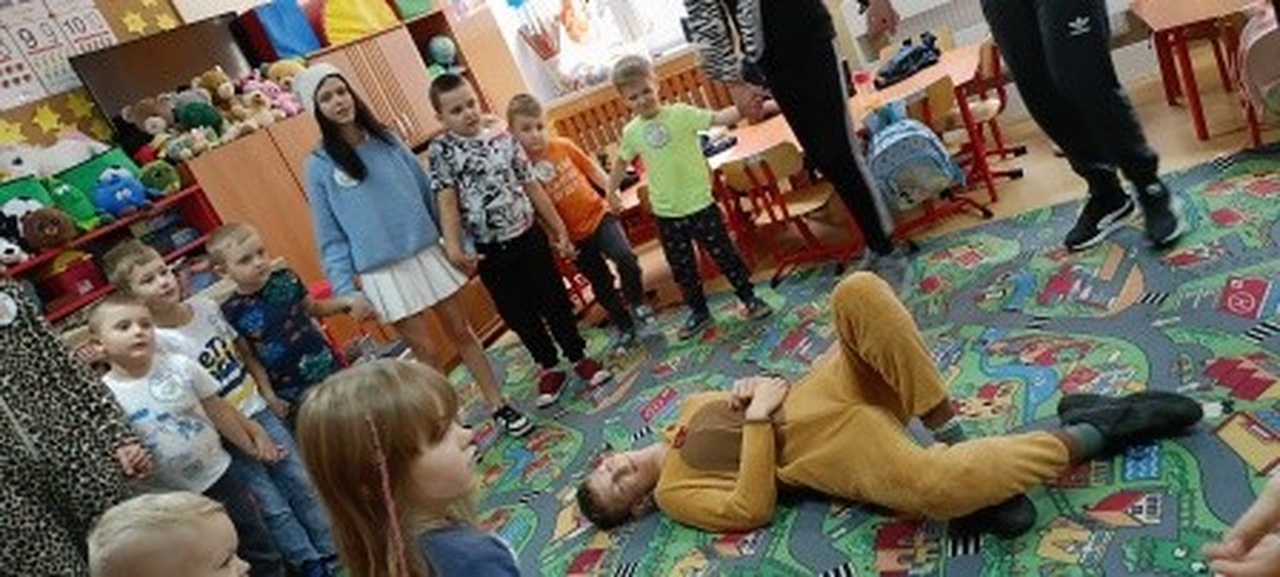 W kolejnej części spotkania dzieci nauczyły się układu tanecznego do piosenki ,,Niedźwiadek''.
