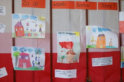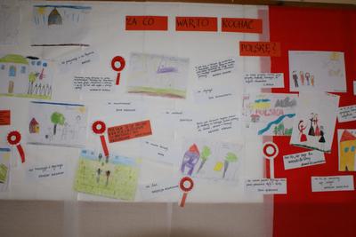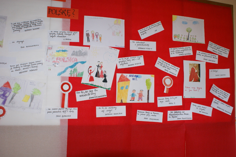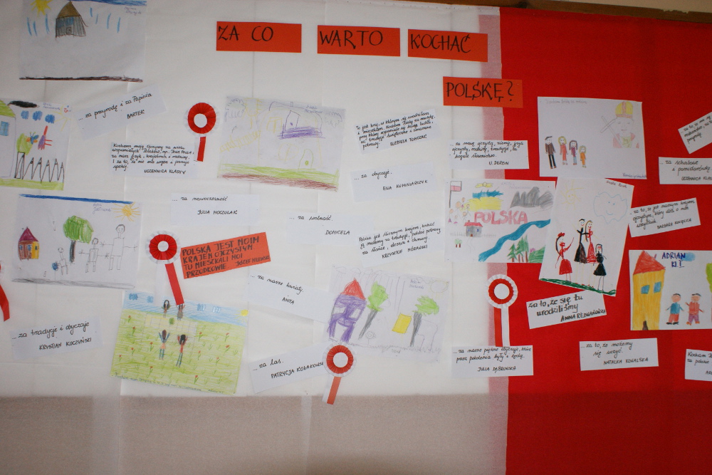 Uczniowie klasy IV, zgodnie z zapowiedzią, zwracali się do rodziców, nauczycieli, sąsiadów, koleżanek i kolegów z zapytaniem „ Za co warto kochać Polskę?” Forma odpowiedzi była dowolna. Wyniki akcji bardzo nas cieszą. Dziękujemy wszystkim za aktywność . W budynku szkoły jeszcze przez kilka dni można zobaczyć efekty pracy czwartoklasistów, a dla tych, którzy nie mogą przyjść prezentujemy galerię zdjęć.