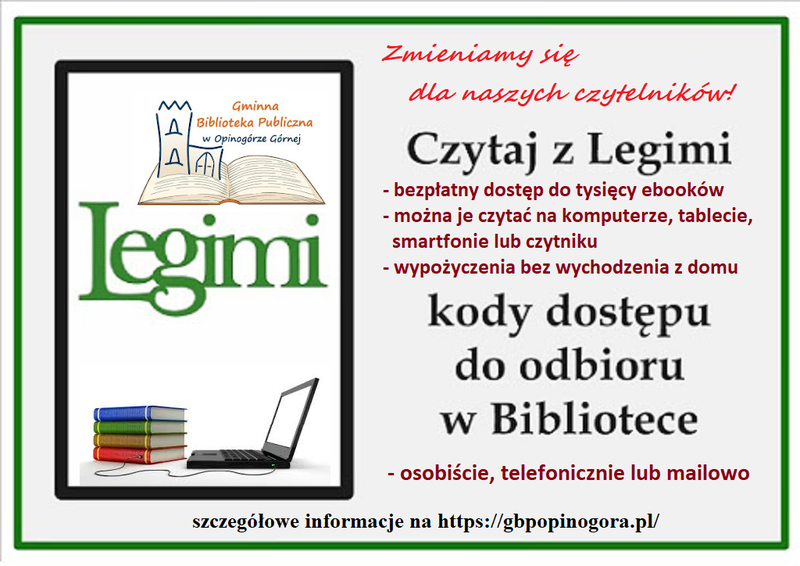 06.05.2020 Aktualności Czytaj z Legimi Gminna Biblioteka publiczna w Opinogórze Górnej zaprasza do korzystania z bezpłatnej usługi Legimi. Przystąpienie do projektu jest wygodnym sposobem dotarcia do książek bez wychodzenia z... Czytaj więcej